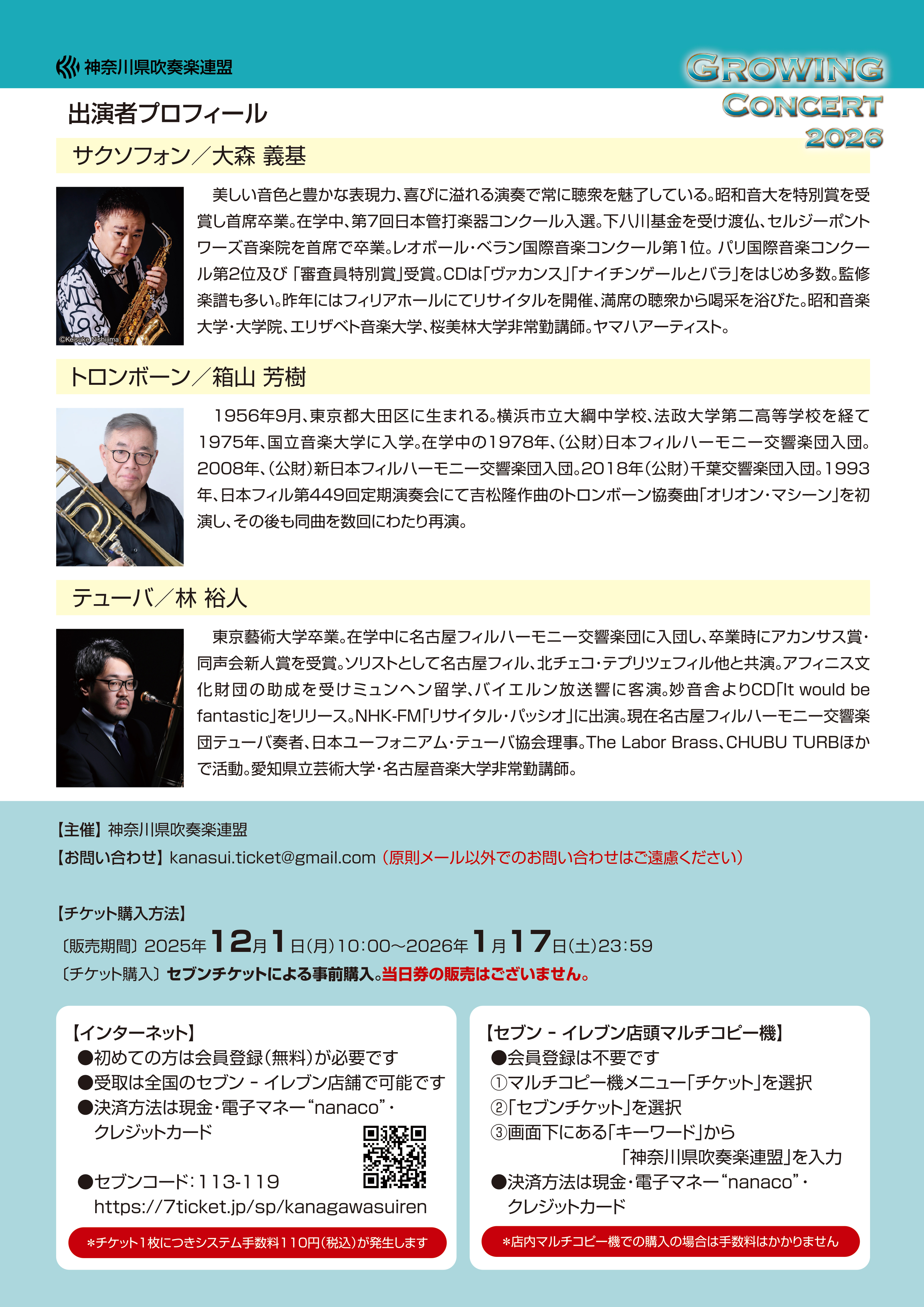 - Growing Concert 2026 を令和8年(2026年)1月18日(日)に開催します。入場券を12月1日(月)より販売開始します。
