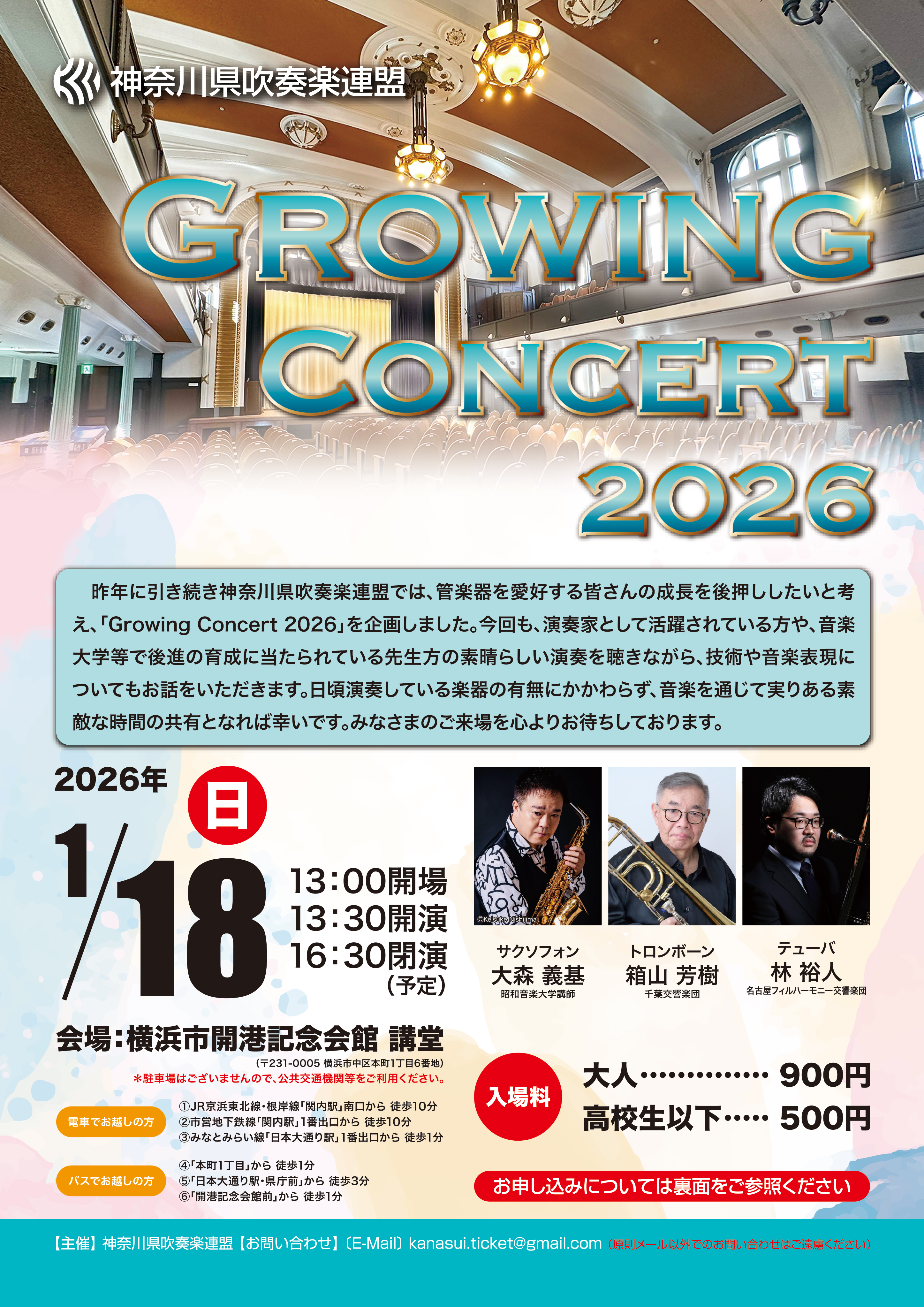- Growing Concert 2026 を令和8年(2026年)1月18日(日)に開催します。